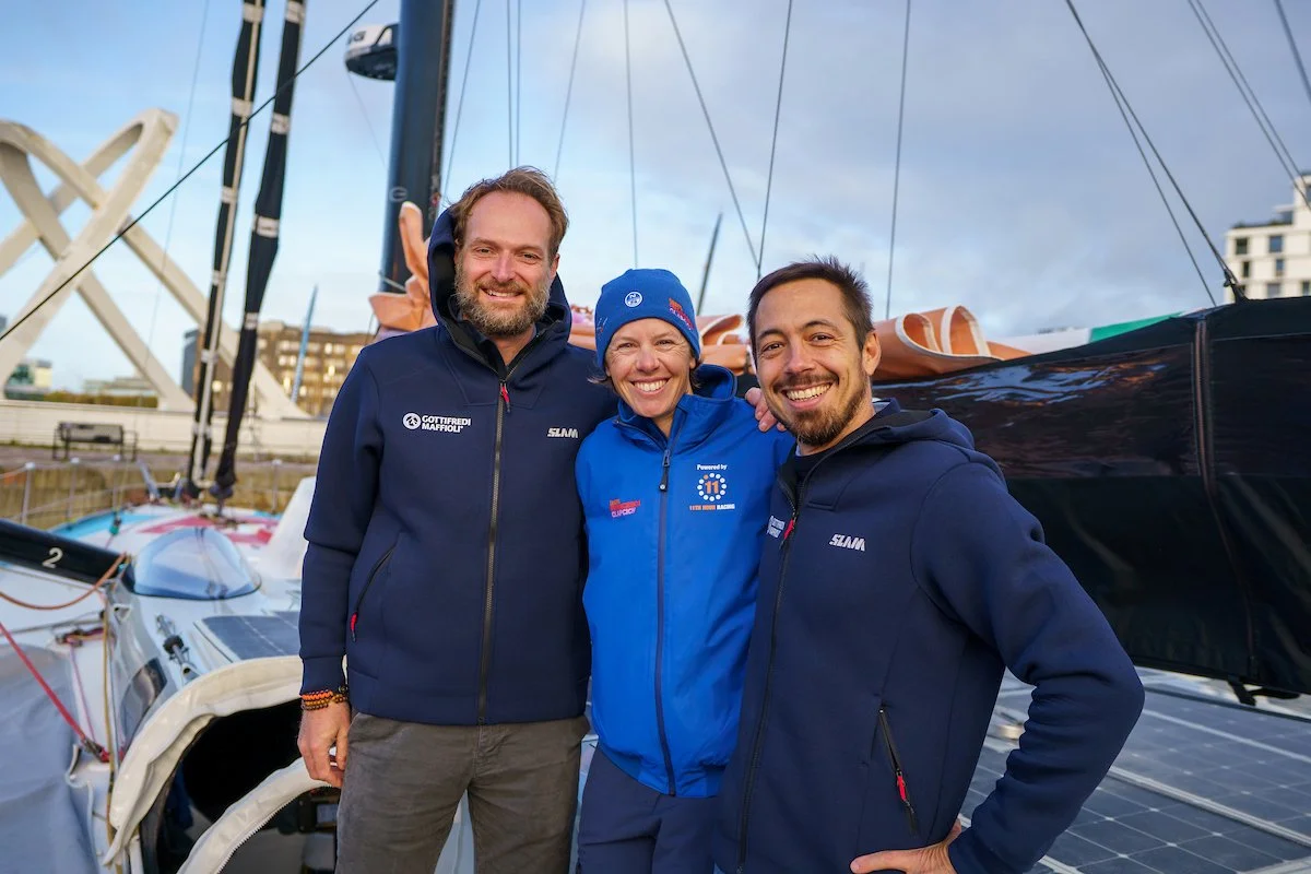 Luigi Maffioli (left), Francesca Clapcich and Matteo Micheli from Gottifredi Mafioli © Marie Lefloch | 11th Hour Racing
